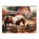Bonito ilustrações de aquarelas do ai de diferentes cenas com cavalos, cascos rústicos ao longo das diferentes estações.