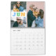 Calendário de colagens de fotos com cada mês abreviado em três letras, todas em diferentes cores, com três de suas próprias fotos por mês. Calendário de fotos da família com uma simples colagem de três fotos a cada mês com o mês abreviado em três letras para ver rapidamente qual mês é, tudo em diferentes cores. Diversão do calendário de colagem de fotos da família impresso com fotos da família, talvez seus favoritos do ano anterior! Avós dotados com um calendário fotográfico dos netos!