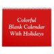 Calendário Colorido do Vazio Vermelho com Feriados