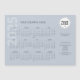 Cartão de calendário magnético Trendy e Chic 2025. Este modelo de cartão de negócios apresenta o seu nome comercial e o logotipo de círculo e o texto opcional de mensagem/slogan, contatos e detalhes das mídias sociais. O texto vem em cor azul-clara e preta-jato, contra um fundo azul empoeirado.