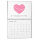 Calendário Corações e frases de inspiração