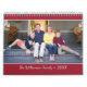 On the calendar pages, your photo will take up the full top page. On the cover, your horizontal image will be letterboxed with a burgundy red band across the top and bottom. A fine white stripe will border the top and bottom of your photograph. Your custom text will appear beneath your image in white text on the dark red.