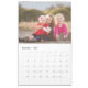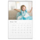 On the calendar pages, your photo will take up the top half of the page. On the cover, your vertical image will completely fill it. Your white custom text will appear in a dark semi-transparent band across the bottom of your photo.