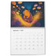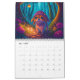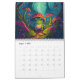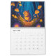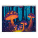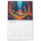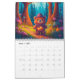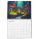 Calendário fantástico com criaturas mágicas numa floresta. Página mensal com árvores, cogumelos e diferentes animais, incluindo uma raposa, coelho, sapo, gato, cão, coelho, urso, capybara, e muito mais.