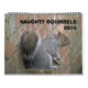 Este engraçado calendário de 2015 mostra uma série de fotografias de esquilos de cinza sendo maldosos. Cada imagem foi tirada num jardim suburbano em Londres. As fotos incluem algumas das expressões faciais mais travessas e alguns comportamentos de esquilo verdadeiramente engraçados e ultrajantes que podem incomodar os jardineiros.