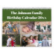 O design de Calendário de Aniversário da Família Personalizada apresenta as suas fotos familiares ao longo do calendário, cada mês destaca o aniversário e a foto da pessoa cujo aniversário é nesse mês específico. Você o personaliza com seu texto e suas fotos. Todos adoram ser reconhecidos no seu aniversário. Que melhor maneira do que com um calendário especial de aniversário? Também, muito útil para lembrar aniversários durante todo o ano! Faz uma manutenção excelente. Todas as fotos de exemplo fornecidas por Storytree.