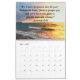 Compartilhe seu amor, paz, esperança e fé com esta inspiradora bíblia e as citações de escrituras. Acredite no poder de Deus para transformar sua vida para ser feliz, alegre e livre. Mostre sua crença e esperança no amor e bênçãos de Deus com este calendário motivacional de Bíblias com lindas fotos do nascer do sol e do pôr do sol. Este calendário encorajador será um maravilhoso lembrete mês após mês para acreditar e confiar em Deus. Espalhe as boas notícias para relaxar, porque Deus está no comando.