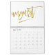 É um calendário de 20xx modelo com efeito folha de ouro (faux, parece) script de meses escritos. Ele mede 11 polegadas por 8,5 polegadas (tamanho médio) com enlace prateado (outras opções de cores de enlace são branco, preto, azul, vermelho, verde ou ouro). Os números são impressos como grade clássico, os feriados não são impressos, mas você também pode adicioná-los. São calendários de doze meses e começa com Janeiro e termina com dezembro. Você pode ter um calendário menor (7 polegadas por 5,5 polegadas) ou maior (14,25 polegadas por 11 polegadas) também.