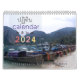 Calendário 2018, grande (esse é o tamanho que eu queria). As fotos são de acordo com o que aparece no site, além disso a qualidade do papel é muito boa, melhor do que normalmente se vê nos calendários.