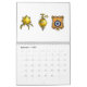 Um calendário com várias imagens, incluindo ferramentas e crachás