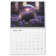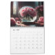 A página de cada mês contém uma bela esfera de vidro refletindo as belas flores ao seu redor.