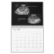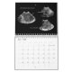 Calendário de 12 meses com imagens de ultrassons de massas e processos de doenças.