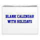 Calendário de Vazio Azul Grande com Feriados Azul