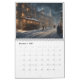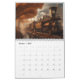 Designs de vapor na página de cada mês - trens, roda-gigante, balões de ar quente e outras máquinas.
