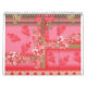 Calendário design de fundo rosa e ouro com vermelho