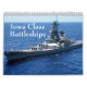 calendário com os navios de batalha da Iowa Class, incluindo USS Iowa, USS New Jersey, USS Missouri, um USS Wisconsin.