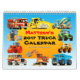 As ilustrações de Paul Stickland dos carros de bombeiros, escavadoras, misturadores de cimento, tratores, escavadores amarelos, camiões basculantes azuis, máquina escavadora alaranjada, caminhão vermelho, rolo de estrada vermelho, rolo amarelo fazem um calendário feito sob encomenda fantástico para um quarto ou um aniversário temático do caminhão, Natal ou presente de época natalícia. Quadro todos os 12 posters dos caminhões. Presentes mais feitos sob encomenda do caminhão da construção de TruckStore. Ilustrações do caminhão pelo © Paul Stickland