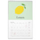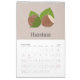 Um Calendário de 12 meses com uma Fruta diferente para cada fundo e pastel. Um belo presente para vegan, um chefe de cozinhar ou um jardineiro! O calendário inclui limão, banana, fig, maçã, morango, cereja, mirabelle plum, avelãs, nozes, castanhas, laranja e um núcleo de maçã!