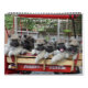 Calendário 2018, grande (esse é o tamanho que eu queria). As fotos são de acordo com o que aparece no site, além disso a qualidade do papel é muito boa, melhor do que normalmente se vê nos calendários.