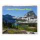 Calendário do parque nacional de geleira - fotografias pelo parque nacional recolhido Bryan de geleira de Michael, TA em outubro de 2014 e junho de 2015. O calendário inclui fotos das montanhas, dos lagos, das cachoeiras, das cabras de montanha, dos carneiros de montanha, da geologia glacial, do pôr do sol e do nascer do sol.