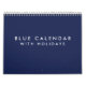 São 12 meses (janeiro - dezembro) vazio calendário azul com feriados (eventos e feriados nos Estados Unidos), fio branco e texto mudável na primeira página.