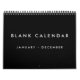 É um calendário de 12 meses (janeiro - dezembro) com feriados (eventos e feriados nos Estados Unidos) e texto personalizável na primeira página.