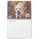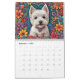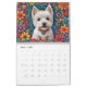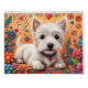 Calendário oeste mostrando 6 x 2 belas imagens de Westies em formações de arte folclórica. (Cada imagem é repetida uma vez no calendário).