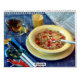 Este é um calendário que indica diversas fotografias de vários alimentos de pequeno almoço.