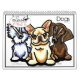 Doze ilustrações originais desenhadas à mão por Andie of Off-Leash Art descrevendo diferentes raças de cães em poses engraçadas. Divertido para amantes caninos de todas as idades.