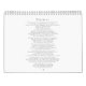 Calendário das Escrituras Cristãs Pretas e Brancas do Salm 91 Minimalista. Linda escritura em texto preto minimalista em branco com um quadro retangular de cinza de carvão fino. Cada mês apresenta um ou dois versos do Salm 91. Bonito para aqueles que querem passar um ano meditando nas palavras de Psalm 91. O cobrir frontal contém um modelo de texto de script personalizável - perfeito para uma mensagem curta. O cobrir traseiro apresenta o texto do cheio para o Salm 91. Todo texto é personalizável para que você possa substituí-lo por sua própria tradução ou script favorito. Seria um presente adorável. Convidamo-lo a visitar a nossa loja Zazzle, Simon & Grace para combinar produtos e muito mais. Entre em contato conosco se precisar de assistência.