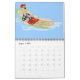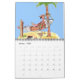 Pinturas de aquarela originais de Anne Ormsby de desenhos animados flamingos aproveitando a vida fazendo coisas como golfe e indo à adorna de praia a cada mês deste divertido calendário.