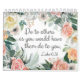 This bible verse calendar features a different scripture and watercolor floral design for each month. Click "edit this template object" to change the year that is printed on the front.