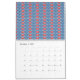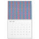 Calendário fundo azul com designs vermelhos e brancos