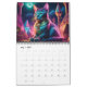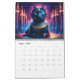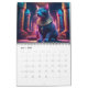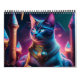 Gatos egípcios sentados em pirâmides neon vestindo acessórios.