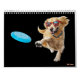A dog calendar featuring Golden Retrievers in unique and humorous depictions for each of the twelve months.