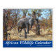 Calendário único da fauna selvagem africana com todos os tipos de animais: rinocerontes, elefantes, girafas, hienas, zebras, chimpanzé e muito mais!