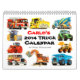Ilustrações de Paul Stickland dos Firetrucks, escavadoras, misturadores de cimento, tratores, escavadores amarelos, camiões basculantes azuis, máquina escavadora do oramge, caminhão vermelho, rolo de estrada vermelho, rolo amarelo. Depois que você usou este grande calendário do caminhão, você poderia moldar todas as 12 imagens dos caminhões, excelente para um partido temático do caminhão. Mais presentes grandes feitos sob encomenda do caminhão de TruckStore em Zazzle. Design e ilustrações do caminhão pelo © Paul Stickland