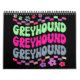 Calendário de Greyhound com 12 Greyhounds diferentes para cada mês.