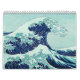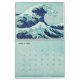 Trata-se de um desenho de ondas marítimas extremas azuis, azuis e aquamarinas com espuma e spray, baseado no trabalho de Katsushiki Hokusai (1760-1849).