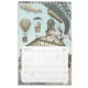 Calendário de 12 meses de ilustrações de ficção científica antiga com alienígenas, espaço, transporte futurista e cidades futuristas.