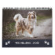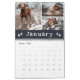 Calendário de colagens fotográficas com impressões de pata que você pode personalizar com fotos de seus animais de estimação. Três fotos por mês em uma colagem minimalista em que o nome do mês é escrito em letras brancas charmosas contra um fundo azul marinho e flanqueado por estampas bonitas.
