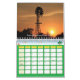 Um Calendário com Paisagens diferentes, de épocas diferentes. É brilhante e colorido que está em um Calendário.
