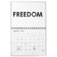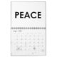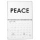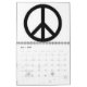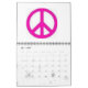 este calendário contem palavras como: VIDA, ESPERANÇA, PAZ, LIBERDADE, e imagens de sinais e de sinais de paz.