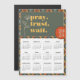 Esta elegante imã de geladeira do calendário mensal de 2025 anos mostra os dias da semana para cada mês em negrito, fácil de ler. O design tem um fundo verde, dourado e cor de laranja com a citação motivacional "reze. confie. espere." Perfeito para casa, escola ou escritório ou presente para qualquer garota que queira um pouco de inspiração!