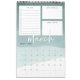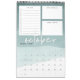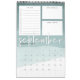O calendário mensal de 12 páginas exclusivo apresenta uma grade de calendário abaixo de três seções personalizáveis para ajudar a organizar seu mês, incluindo uma lista de ações com caixas de seleção, uma seção para "grandes metas" e uma seção de anotação. Cada página apresenta um fundo de gradiente de aquarela puro em tons suaves de verde-jade, com o mês em letra branca manuscrita. Personalize o cobrir inicial com o ano e seu texto personalizado para tornar este lindo calendário de 2019 seu próprio calendário.