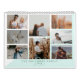 Um monograma moderno e legal da família chama-se grelha de colagem azul verde pastel com 20 fotografias com um bloco geométrico de cor abstrato. Todas as cores são editáveis.