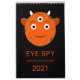 Calendário de cores de SPY para crianças. Do livro, EYE SPY, escrito por Anne Miranda, ilustrado por Tyler Miranda. Doze monstros coloridos, um por cada mês do ano.
