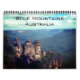 Calendário fotográfico com paisagens atordoantes das Montanhas Azuis, Nova Gales do Sul, Austrália. As Montanhas Azuis são uma região montanhosa em Nova Gales do Sul, Austrália. Ele faz fronteira com a área metropolitana de Sydney, seu sopé começa aproximadamente 50 quilômetros a oeste da capital estadual. A área começa no lado oeste do rio Nepean e estende-se para oeste até ao rio Coxs. Formada principalmente por um planalto de arenito, a área é dissecada por tripas de até 760 metros de profundidade. O ponto mais alto da faixa é 1.190 metros acima do nível do mar. Grande parte das Montanhas Azuis é incorporada no Patrimônio Mundial da Zona da Grande Montanha Azul, composto por sete áreas de parques nacionais e uma reserva de conservação.