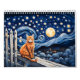 This enchanting calendar features twelve imaginative cat-themed artworks set in dreamy urban landscapes. Each scene blends feline charm with stylized architecture, glowing moons, and cozy city moments. The art style draws inspiration from Art Nouveau, with flowing lines, decorative details, and rich, mosaic-like textures that evoke warmth and wonder.