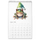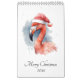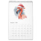 Calendário com no cobrir uma pintura de aquarela de um flamingo rosa vestindo um natal cor-de-rosa no estilo de natal. Cada mês tem um animal diferente em aquarela.